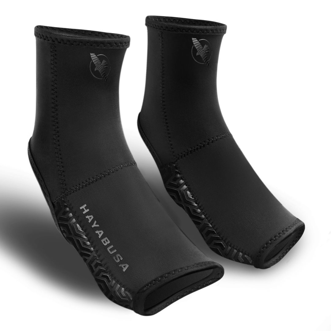 Push your performance further with the Hayabusa Ashi Foot Grips. Now in its fourth generation, this design has been refined and perfected through fighter feedback to deliver our best fit and feel yet. Built for athletes who demand precision and control, these grips provide unmatched traction to keep you grounded and explosive through every movement. Advanced silicone treaded soles lock in your footing, giving you the stability to strike, pivot, and transition with total confidence, while protecting your feet from mat burn during intense sessions. Crafted from lightweight, 4-way stretch fabric, they contour seamlessly to your feet for a natural, second-skin fit. Perfect for Jiu-Jitsu, Muay Thai, and Kickboxing.
