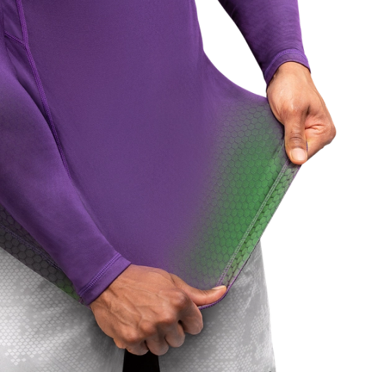Jiu Jitsu is all about movement. That's why we designed Fusion, an ultra form fitting rash guard that changes as you move. Its specially-made fabric shifts colors when it stretches. Plus, it feels as great as it looks, with a soft, durable material that keeps you dry and prevents mat burns.