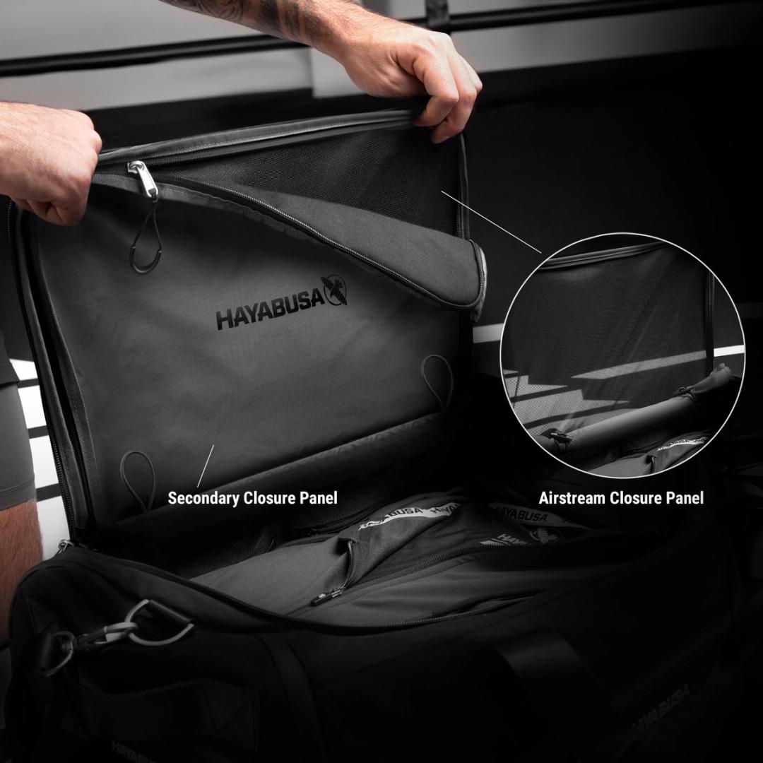 Purpose built for performance, the Airstream Duffle Bag navigates your every need with a perfect place for everything. Unzip the dual-layer main compartment to maximize ventilation post-workout, and separate gloves or shoes into their own expandable pocket to keep everything neatly organized. This spacious 50L gym bag features tactical hauling straps ideal for transporting larger martial arts equipment. Featuring seven zippered pockets for gym accessories and strategically placed ventilation ports, this lightweight gym bag is bound to become your new favorite travel companion.