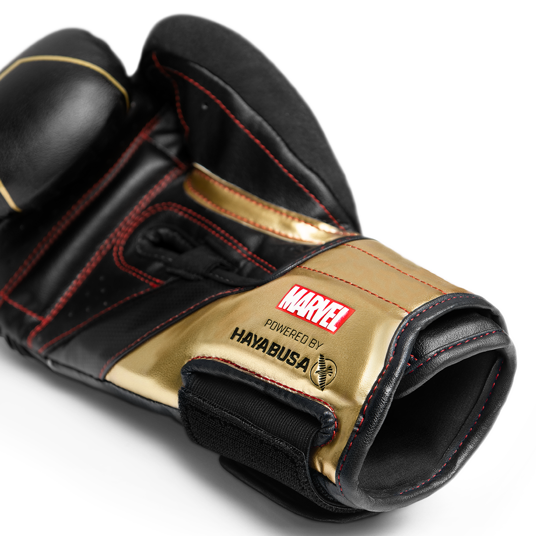 Black Widow is a deadly assassin that can stand shoulder to shoulder with super soldiers. This martial arts expert used her ruthless skills as a secret agent to become one of the Avengers most valuable assets. Inspired by Black Widow’s tactical uniform, our boxing gloves embody her stealthy look with her signature widow’s bite bracelets and hourglass emblem. They’ll never see you coming.