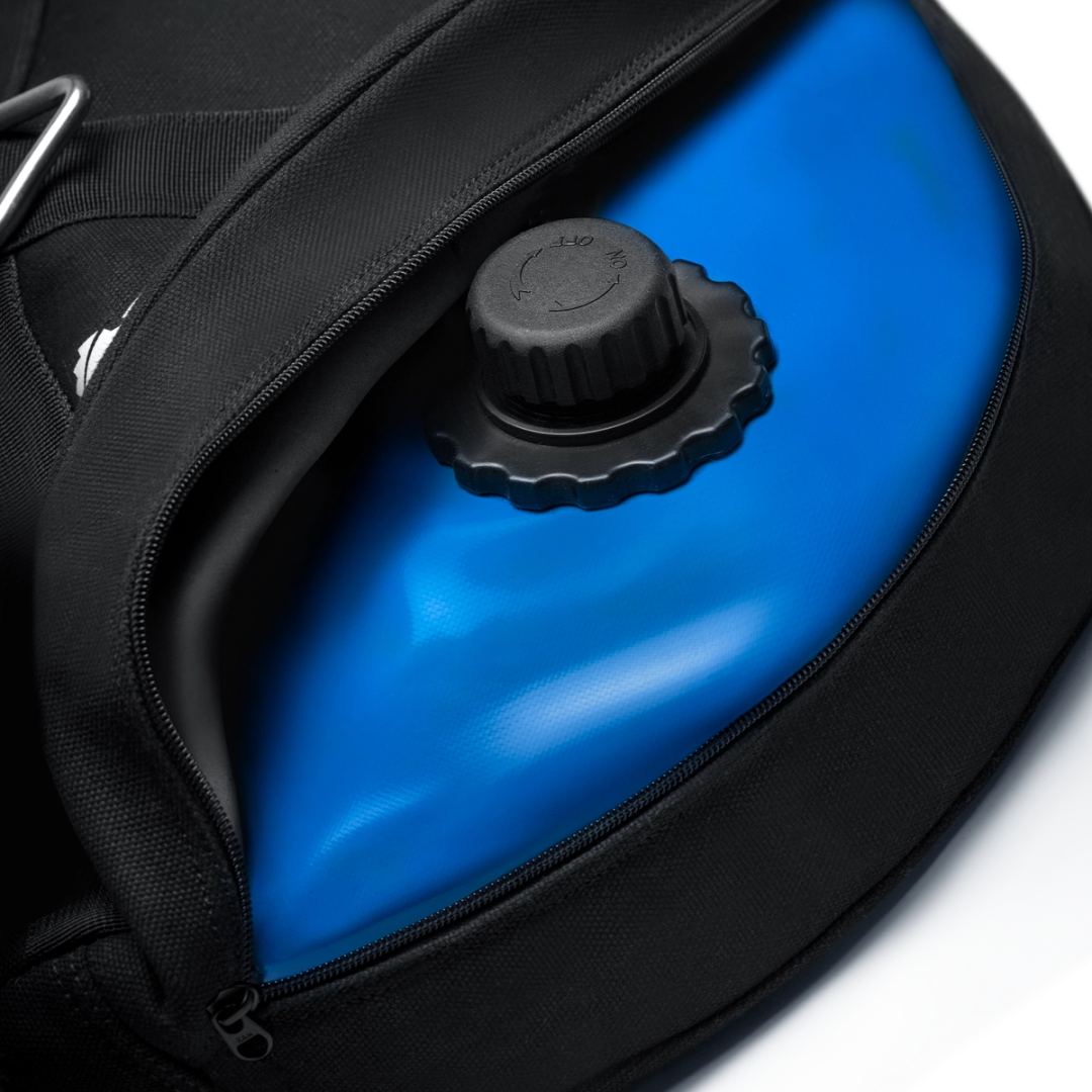 Water tank: PVC bladder holds 900oz or ~55 lbs of water