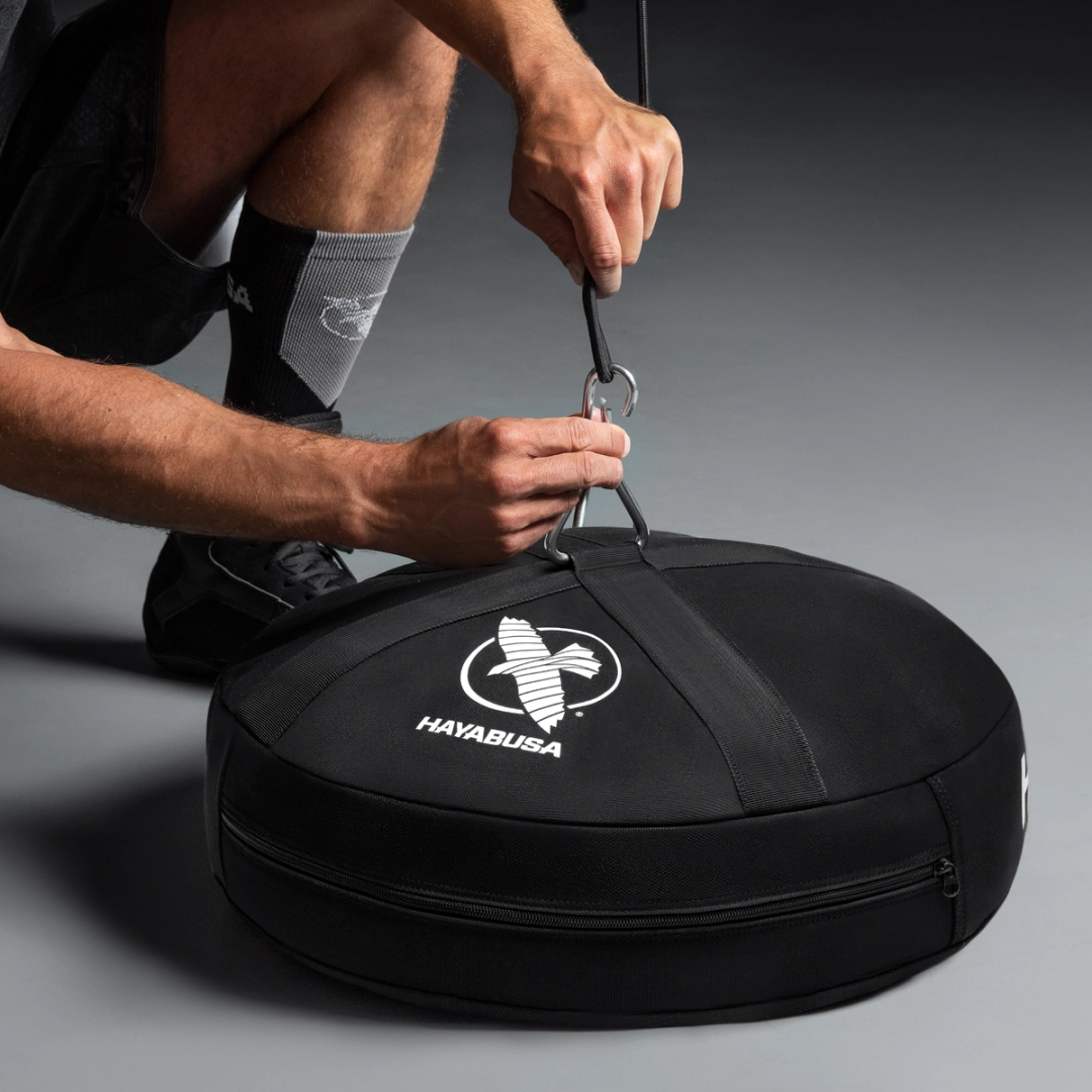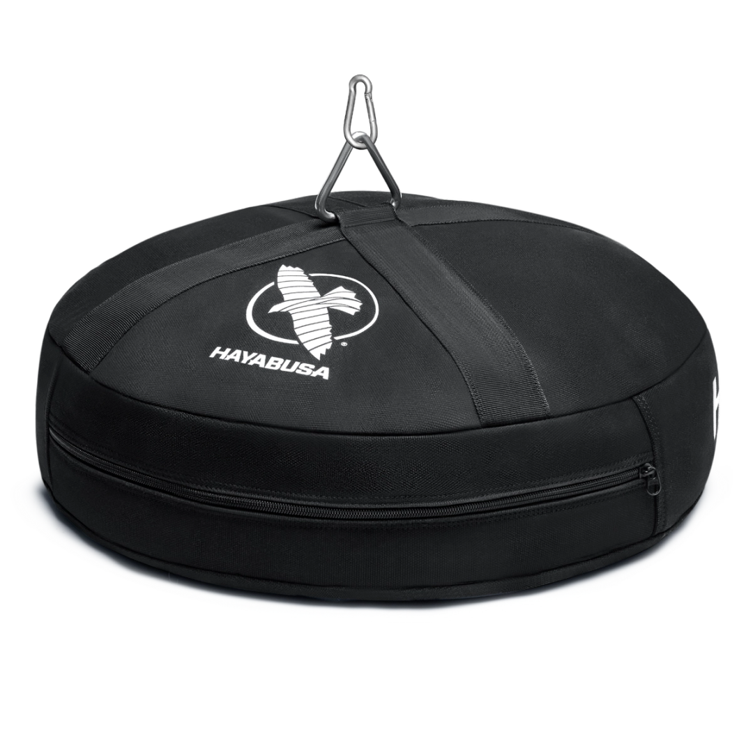 Anchor your training bag in minutes. The Hayabusa Double End Heavy Bag Anchor fastens to any punching bag to provide maximum stabilization; you only need water or sand. Its large bladder holds up to 900 oz or ~55 lbs of water, the perfect weight to anchor a double end bag or prevent your heavy bag from swaying. Constructed from heavy-duty canvas fabric, with reinforced nylon webbing and a sturdy triangular D-ring on top to distribute tension effectively.