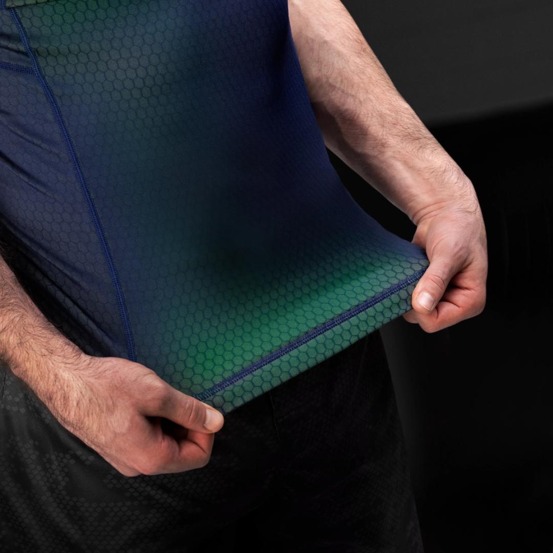 Crafted using extraordinary interwoven fabric that reveals a mesmerizing color-shifting design as you stretch and move on the mats. This men’s rash guard delivers superior durability with reinforced flatlock stitching, providing unmatched resilience against the wear and tear of intense training sessions.