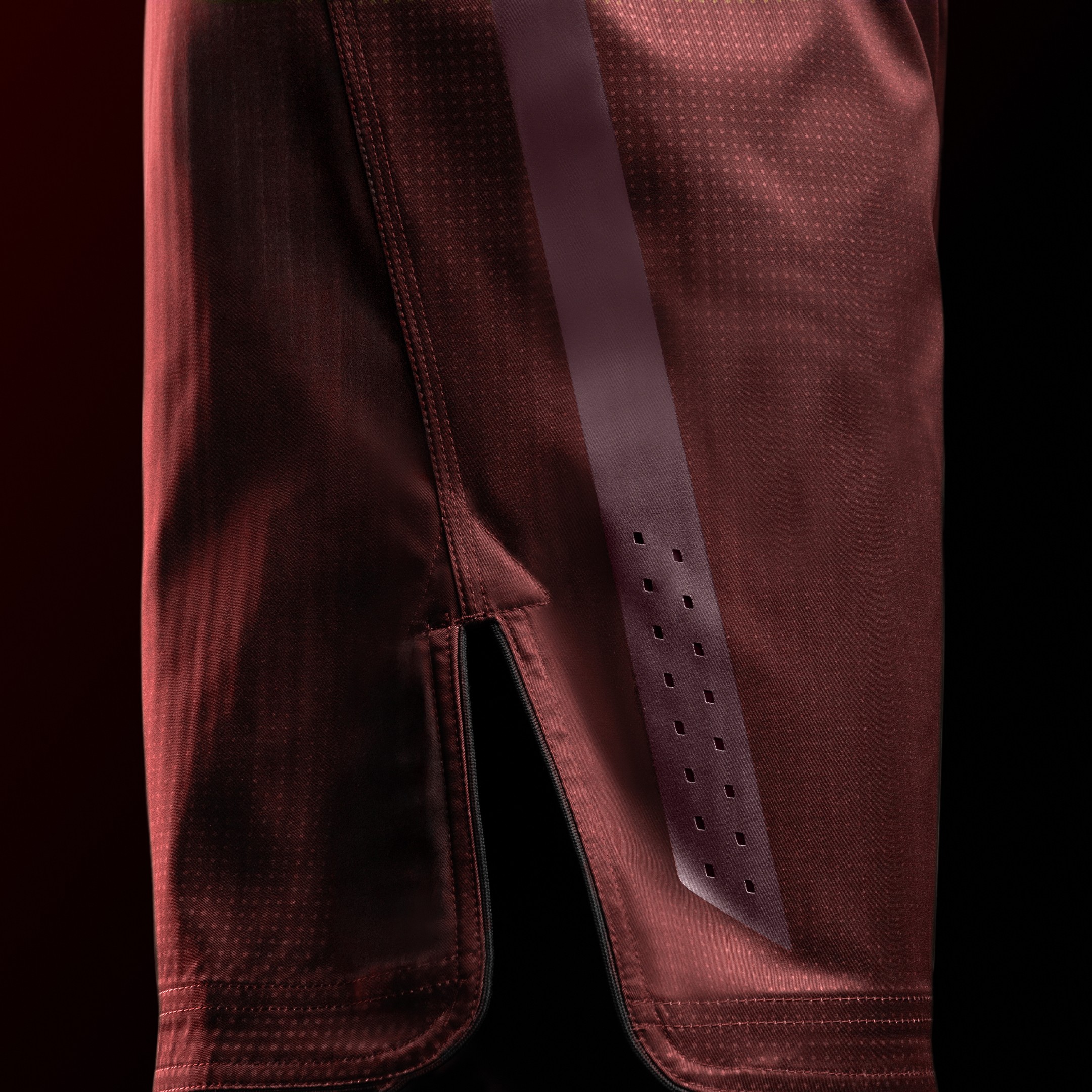 Materials: 240 GSM, 100% polyester. Thigh panels: 88% polyester, 12% elastane