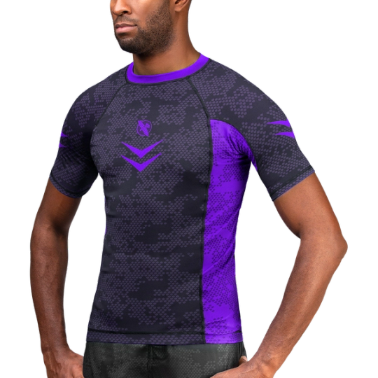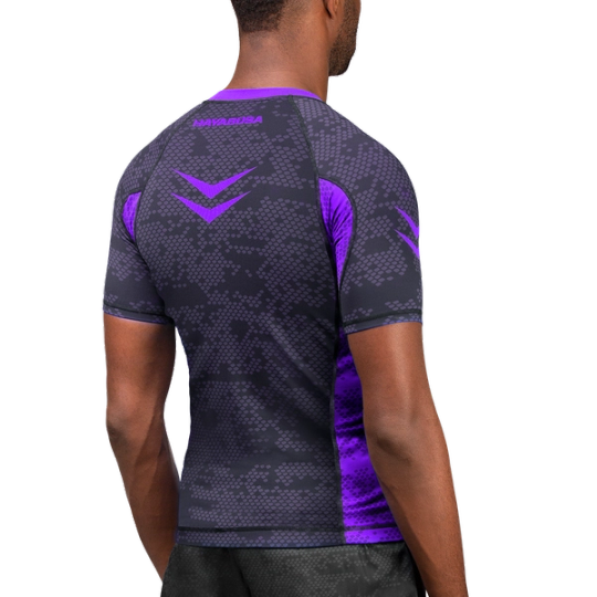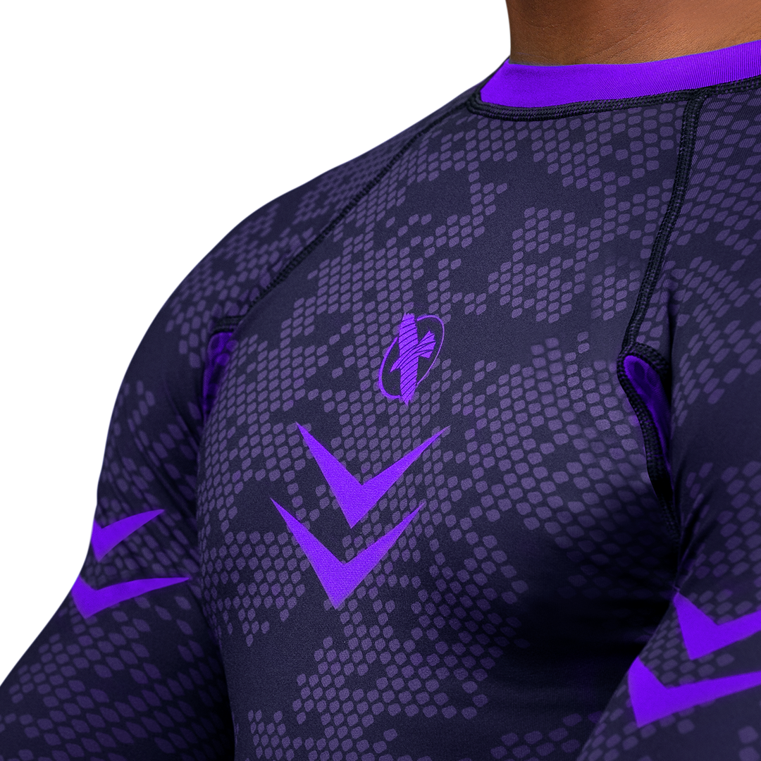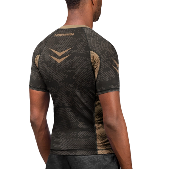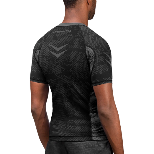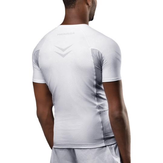 The Hayabusa Ranked Rash Guard compliments your fluid mobility with a competitive cut that delivers a precision fit. Its high performance stretch fabric conforms to your body with the perfect balance of elasticity to regulate body temperature, manage moisture, and provide peak comfort. IBJJF compliant with a sophisticated two-toned design and ultra high strength fabric that pushes the limits of durability.