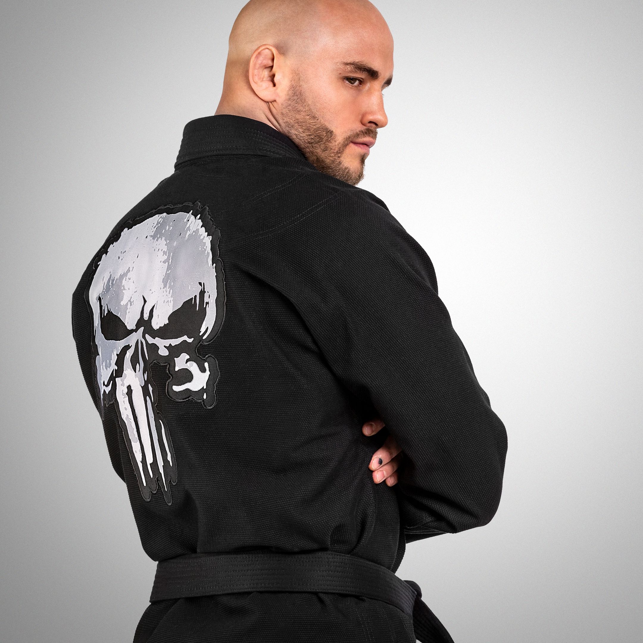Our goal for The Punisher Gi was to use the lightest materials, the strongest weave, reinforced high-stress areas, and top it off with The Punisher’s signature skull insignia.