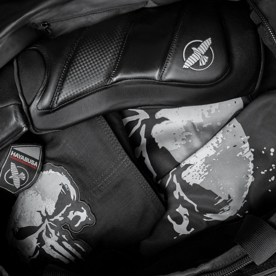 Roomy and versatile, The Punisher Duffle is the ultimate bag for all your training gear. Engineered to store your workout equipment with an oversized main compartment and a ventilated boxing glove/shoe pocket perfect for boxing training sessions. Inspired by Frank Castle's tactical combat gear, this bag was constructed with a dark, rugged design and ultra-durable ripstop materials.